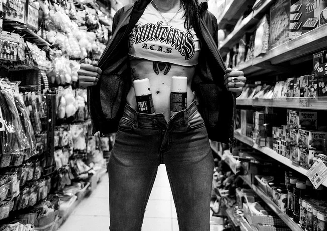 Hay muchos posados en el libro, no quería que se repitiesen las mismas poses, pero tenía que respetar su intimidad, si, por ejemplo no querían mostrar sus rostros, ahí se complicaba la cosa. Pero finalmente el estilo personal de cada una me ha permitido hacer un reportaje variado con diferentes tipos de retratos en los que la protagonista es ella y en otros el protagonista es su pintada o su firma. Necesitaba que muchos fuesen posados para poder equilibrar el libro con las fotos de acción.
