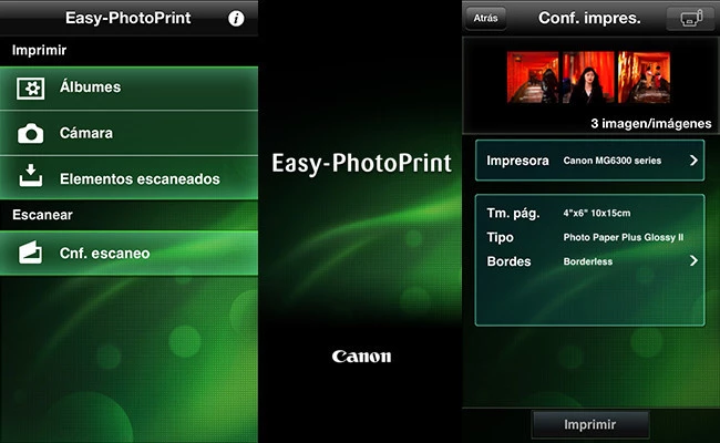 La aplicación cuenta con opciones para elegir entre una amplia variedad de tamaños y tipos de papel, indicar el número de copias e impresión con o sin bordes. Su funcionamiento es muy intuitivo dado que es capaz de detectar automáticamente nuestra impresora siempre que esté conectada a la misma red inalámbrica que el dispositivo y movernos por sus opciones no supone ninguna complicación encontrándose en perfecto castellano.