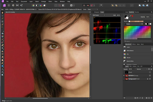 Continuamos con nuestra guía de inicio en Affinity Photo. En la primera edición vimos el proceso de revelado digital y en su segunda parte la edición. En este apartado nos centraremos en el retoque digital y algunas herramientas adicionales con las que Affinity se mantiene como una fuerte alternativa ante Photoshop.