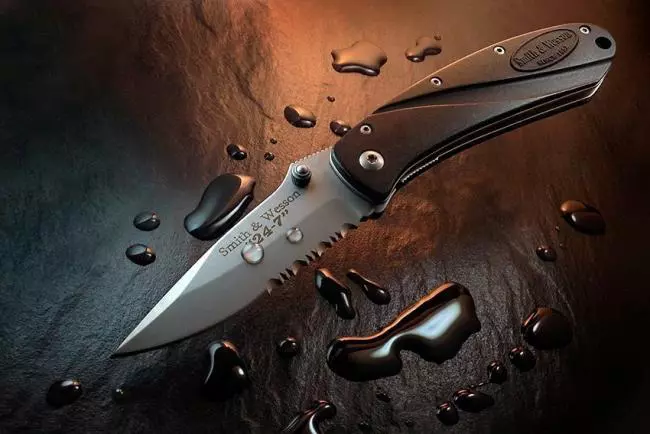 Fuente de luz #1 (proveniente del lado izquierdo): En este caso el cuchillo necesitaba algo de luz en el filo. Esta luz debemos orientarla de forma que ilumine perfectamente el contorno del objeto por la parte izquierday, en este caso, de forma tal, que nos permita leer correctamente la inscripción de la hoja del cuchillo