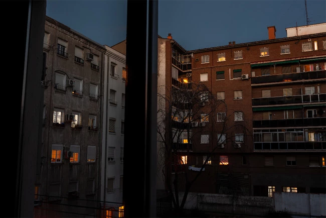 Luego tomé hasta siete fotografías distintas cuando el sol había desaparecido por completo. Mi objetivo era captar el máximo número de ventanas encendidas. Desgraciadamente no encontré aquel día mucha actividad en los hogares. Lo único que cambié es la velocidad de obturación. Solo quería registrar las luces con sumo detalle. Así que bajé la exposición a apenas 8 segundos en las siete fotografías que tomé para captarlas.